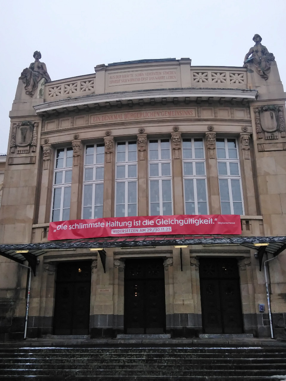 Das Theater schließt sich den zivilgesellschaftlichen Gegendemonstrationen an, als eine Einrichtung, die für Vielstimmigkeit, Internationalität und gleiche Menschenrechte für alle einsteht.