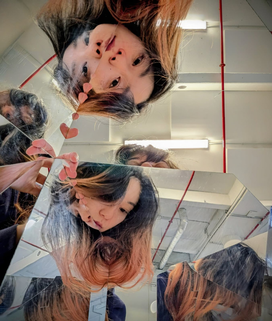 In their performance, Taiwanese dancer Pin-Chen Hsu and Colombian artist and drummer Eliana Beltrán Palacio take inspiration from the exhibition „Les gens ne disent presque rien“ by Roméo Mivekannin and his quotation of Paul Celan’s poem “Auge der Zeit” (Eye of the times). Together they share the now empty space and explore the progression of time to the changing beats of drums. “askance” = skeptical, tilted, crossways it seems to pass. Through her movements, Pin-Chen Hsu evokes memories of pre-human and transhuman states within her body, thereby challenging mechanisms of framing and hierarchisation. The labelling and stigmatisation of people, which have become visible in Mivekannin’s works and their historical references, are reflected in the performance with the aid of mirrors; the act of being on display and the audience’s gaze are bounced back. While the present remains trapped in a cage surrounded by past trauma, the performance asks what a glimpse – or even a path – into the future might entail.