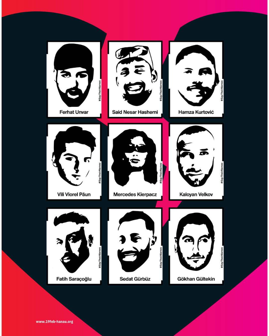 In Erinnerung an: Gökhan Gültekin, Sedat Gürbüz, Said Nesar Hashemi, Mercedes Kierpacz, Hamza Kurtović, Vili Viorel Păun, Fatih Saraçoğlu, Ferhat Unvar, Kaloyan Velkov und Ibrahim Akkuş.