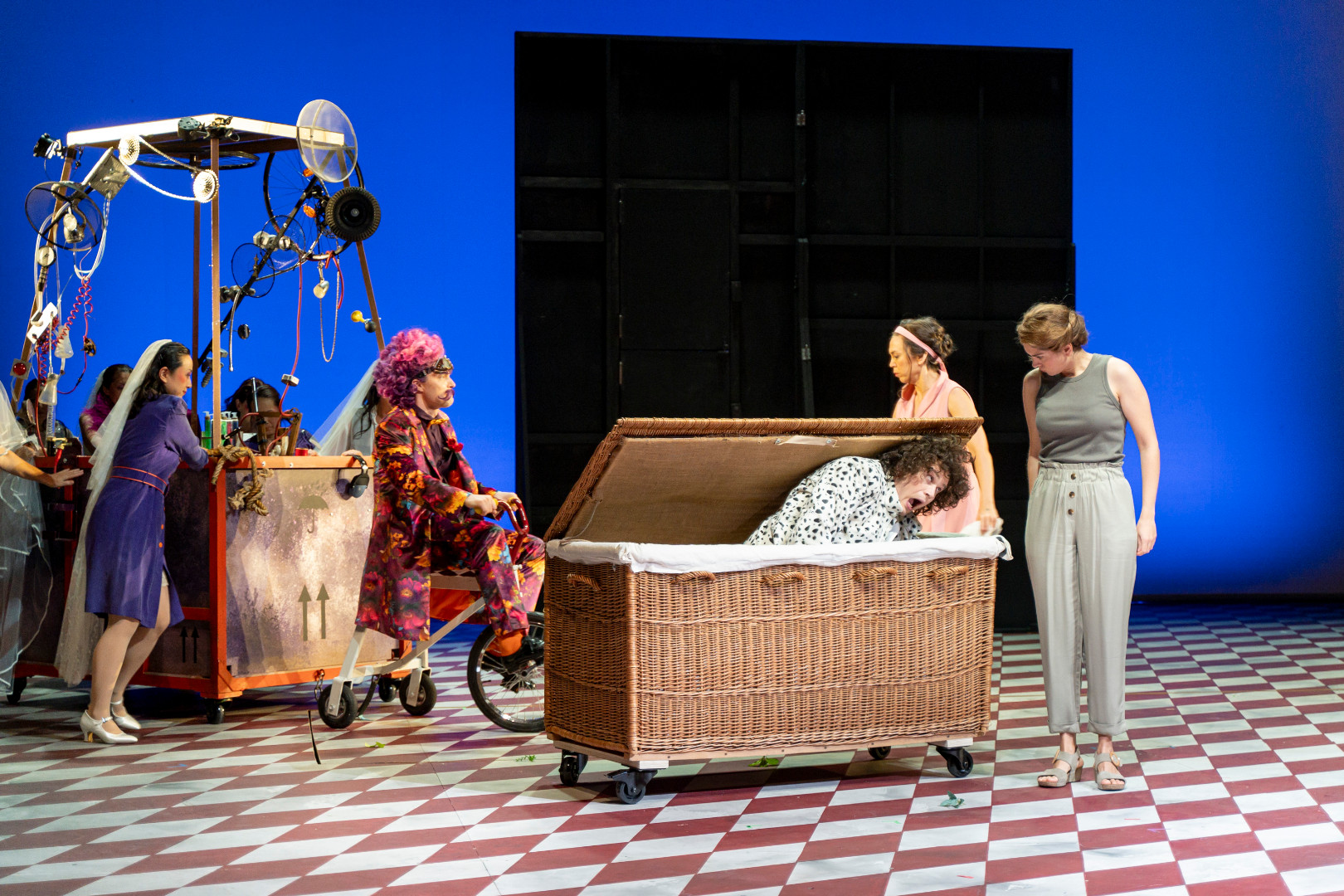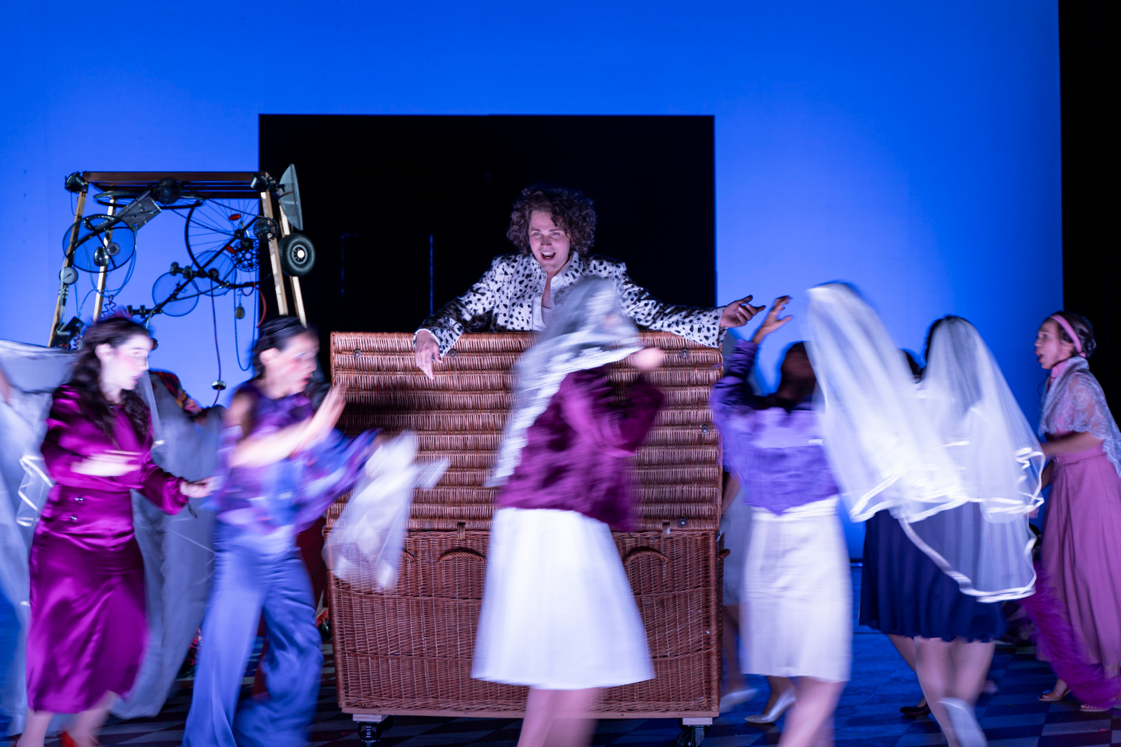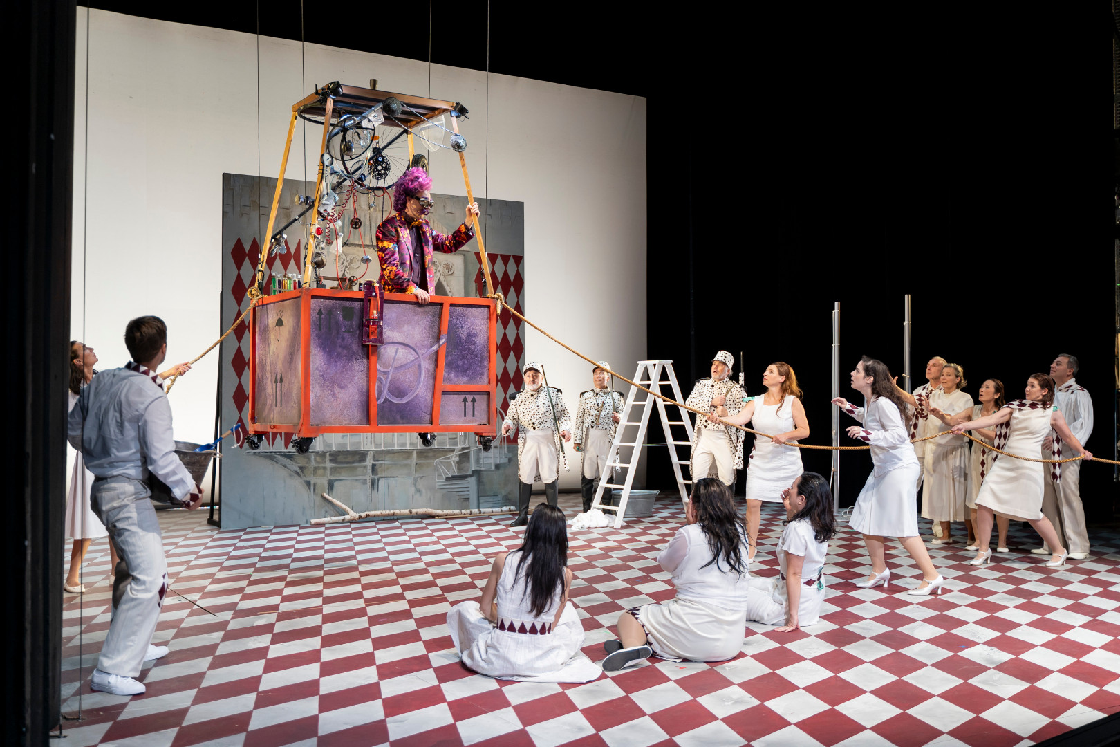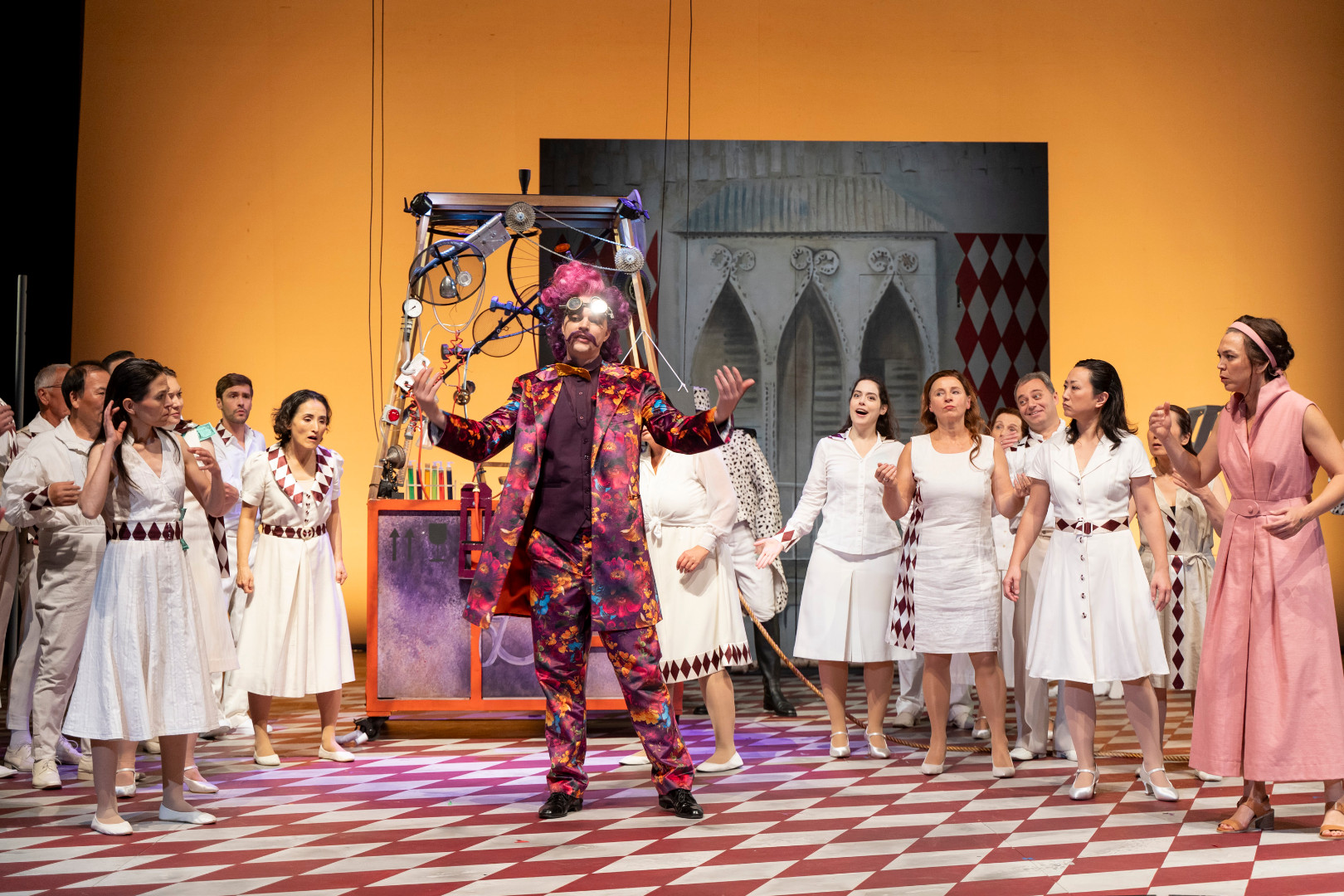 Tamara Heimbrock hat ein Händchen für Kurzweil. Leerlauf gibt es bei ihr nicht. Den Inhalt der Oper peppt sie mit einem steten Fluss an Ideen auf, zeigt Screwball und Comic. Alles fügt sich ins Gesamtkonzept. […] Der Sound atmet südländisches Flair. Die Chemie stimmt auch zwischen den Protagonisten. Alle sind in Spiellaune. Vorn dabei Ferdinand Keller. Mit Talent im humoristischen Fach gesegnet, verkörpert der Tenor den tollpatschigen Bauernbuben Nemorino mit Aplomb. Stimmlich hat Keller zugelegt. Seine Arie „Una furtiva lagrima“ zu Harfe und Fagott bezirzt. […] In der Rolle der Adina steht Sopranistin Julia Araújo bereit, die schon beim letzten Donizetti vor drei Jahren als Caterina Cornaro glänzte. Nun gibt sie im grünen Hosenanzug eine launige Gutsbesitzerin, auf die Nemorino, zu Beginn mit weichen Knien, ein Auge wirft. Mal keck, mal verstimmt, zeigt Araújo Spielwitz, ihr gut austarierter Sopran verfügt über glasklare Spitzen. […] Clarke Ruth im schillernden Quacksalber-Outfit verleiht jenem Liebestrankbereiter Dulcamara Charme. Sein flexibler Bass wird in den richtigen Momenten wohlig tief. Einen Tipp hält er bereit: Wein schütteln und zügig konsumieren, damit der Stoff seine Wirkung entfalten kann. Sora Winkler hat als Bauernmädchen Gianetta bezaubernde Momente. […] Die Mitglieder des Opern- und Extrachors sind mal wieder eine Wucht. […]