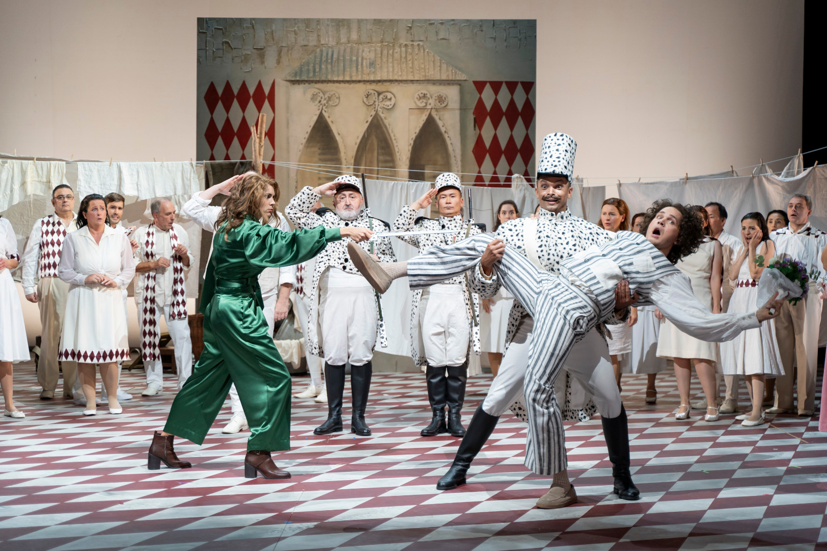 Liebestrank. Damit setzt er eine aberwitzige Achterbahn der Gefühle in Gang: Gewürzt mit je einer Prise Alkohol, brütender Sonne, unglaublicher Zufälle, subtiler Intrigen und einer unverhofften Erbschaft zieht der Trank schließlich die ganze Gesellschaft in seinen Bann. Mit ihrer 1832 uraufgeführten musikalischen Komödie schufen Gaetano Donizetti und Librettist Felice Romani nicht nur eine urkomische und zugleich anrührende Liebesgeschichte, sondern auch ein Lehrstück über Verführungskunst und Manipulation.