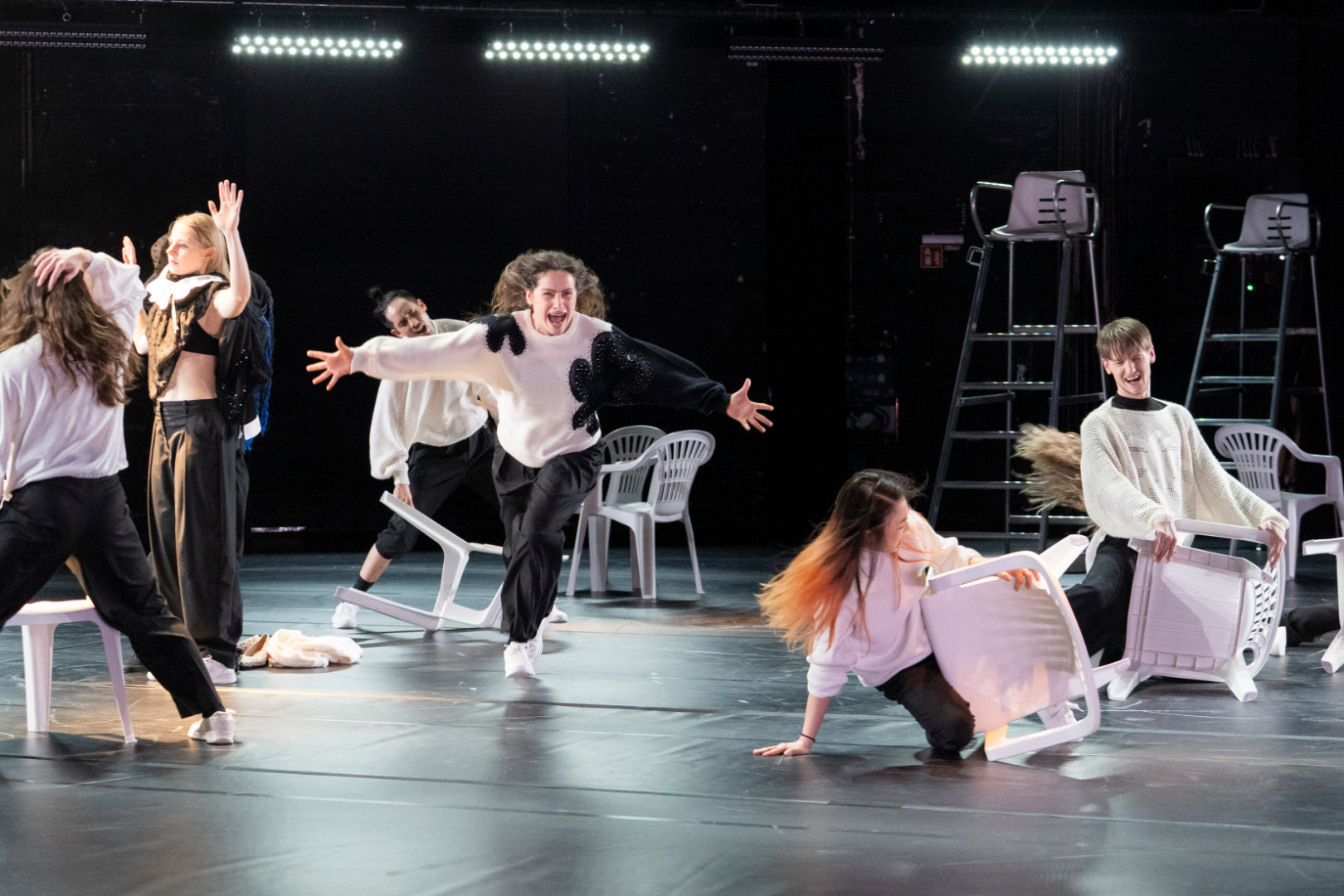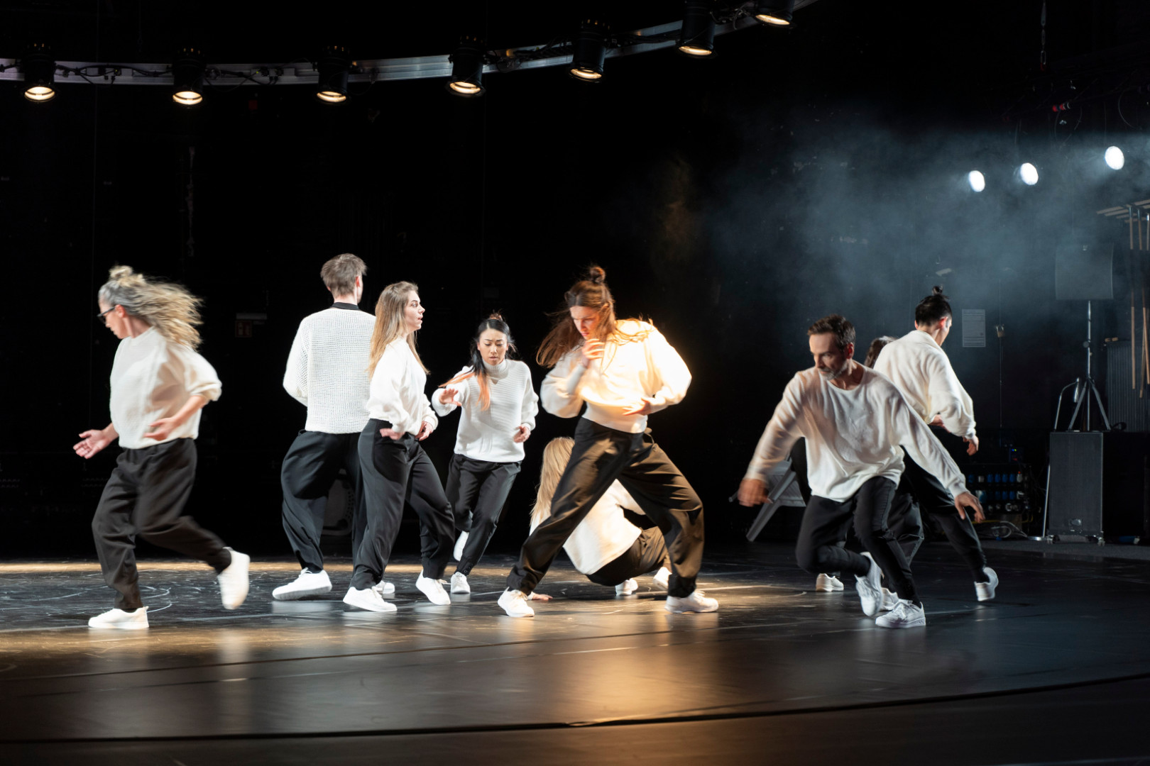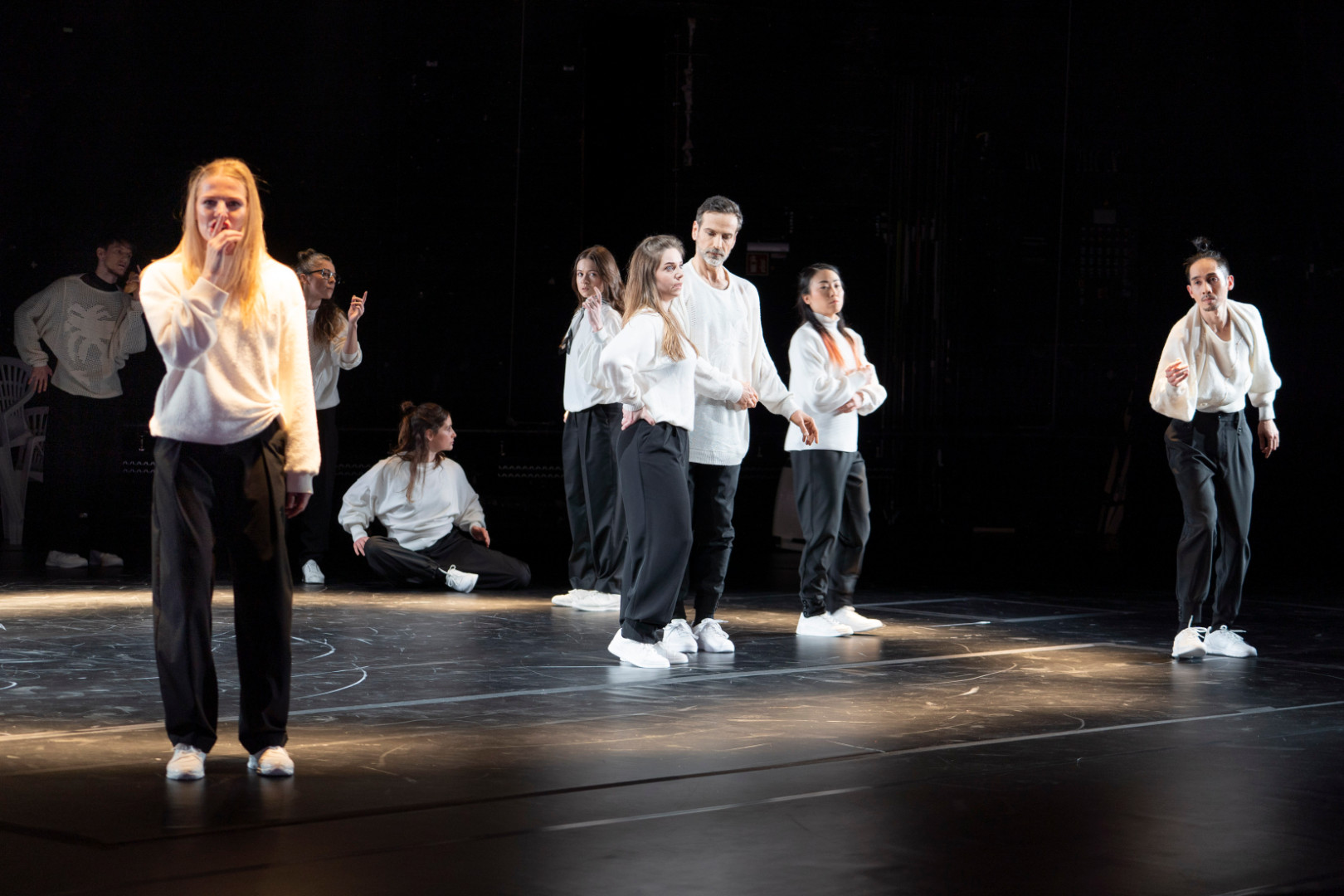 Die Tänzer*innen bewegen sich zwischen bedrohlicher Anspannung und trügerischer Einladung an das Publikum. Schleichend etablieren sie Hierarchien und Konkurrenzkämpfe, während die Wahrheit in vielen Formen erscheint und sich entzieht. Mit Wucht und großen Bildern lädt der Abend dazu ein, sich auf drängende Fragen unseres demokratischen Zusammenlebens und unser Vertrauen ineinander einzulassen.